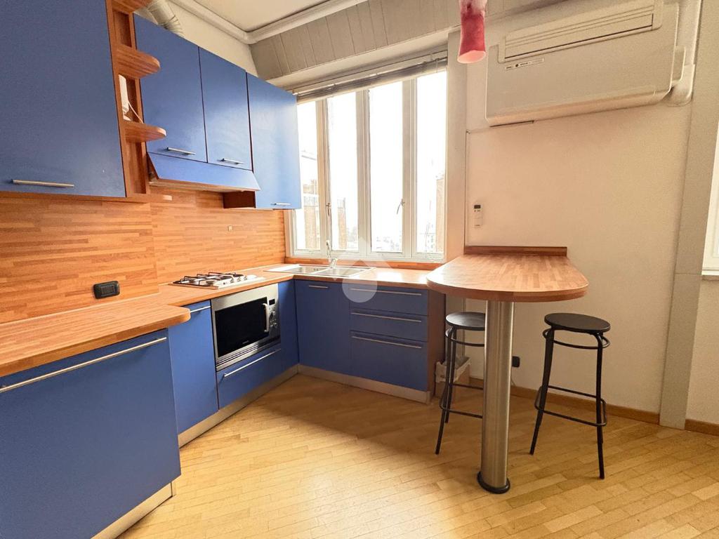 L'appartamento è compsto da ingresso, soggiorno con cuina a vista, camera matrimoniale, serizio finestrato. Limmobile, completamente ristrutturato, verrà consegnao completo di arredi e elettrodomestici. Il sistema di riscaldamento è centralizzato, mentro il codizionamento è autonomo.