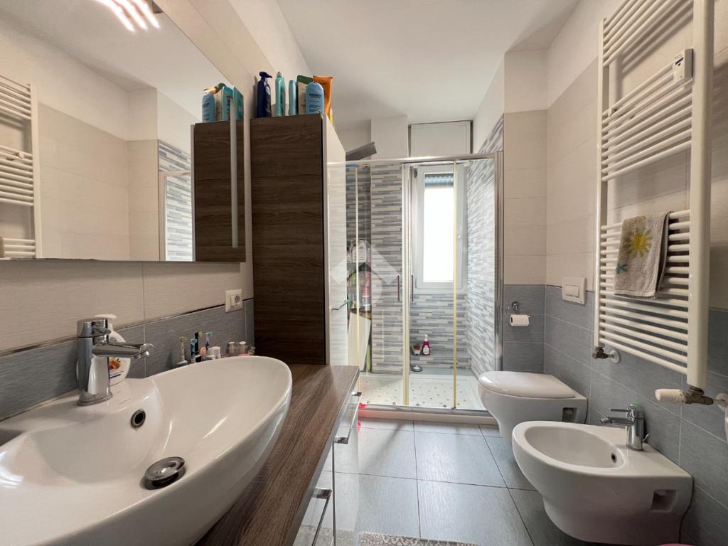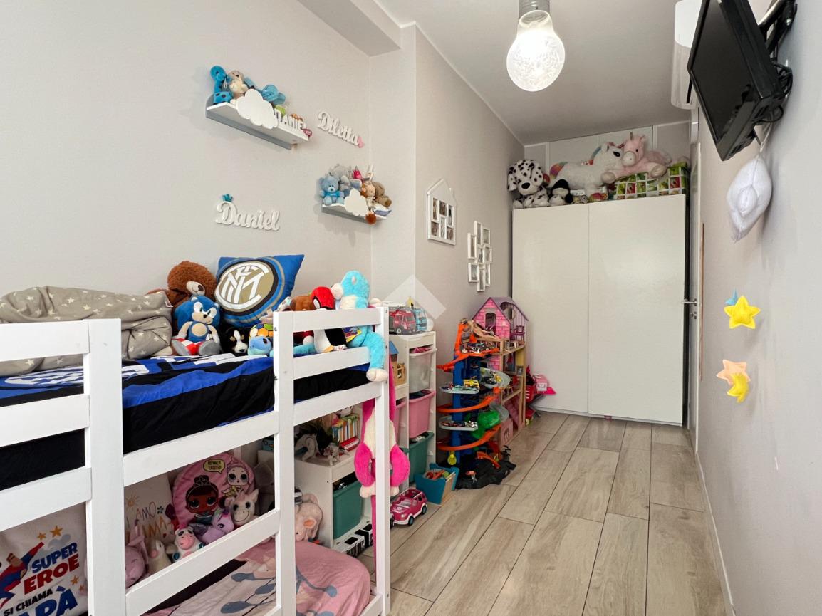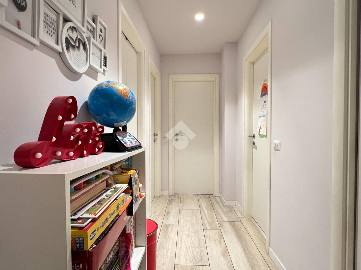 L'immobile si compone di un luminoso ingresso che si apre sulla zona giorno con cucina a vista. Un disimpegno conduce alla zona notte, dove troviamo una spaziosa camera matrimoniale completa di cabina armadio, un bagno finestrato con doccia, una seconda camera, un locale lavanderia e un utile ripostiglio.