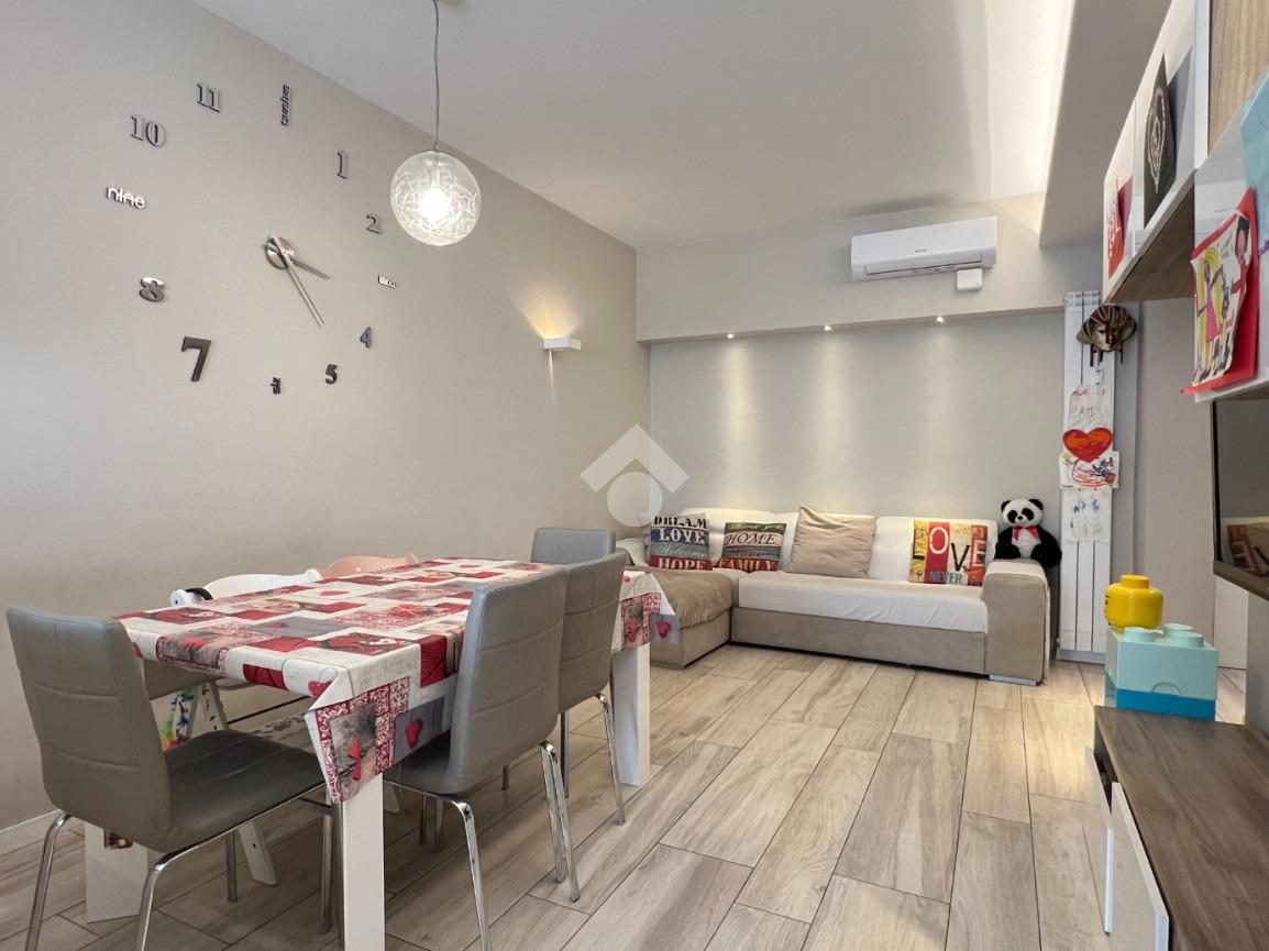 L'appartamento è stato completamente ristrutturato e presenta: pavimenti in ceramica, doppi vetri, porta blindata e impianto di aria condizionata autonomo in tutti gli ambienti. Il riscaldamento è centralizzato con termosifoni.