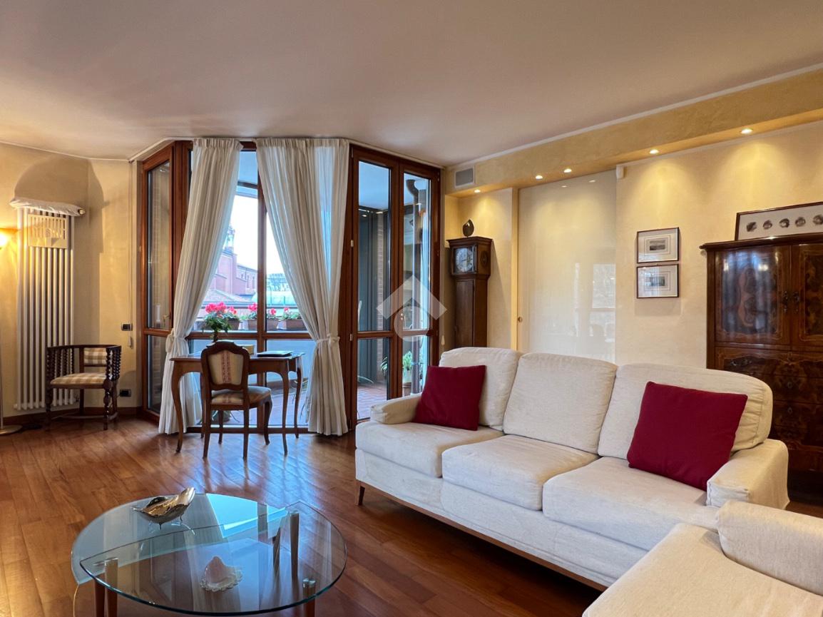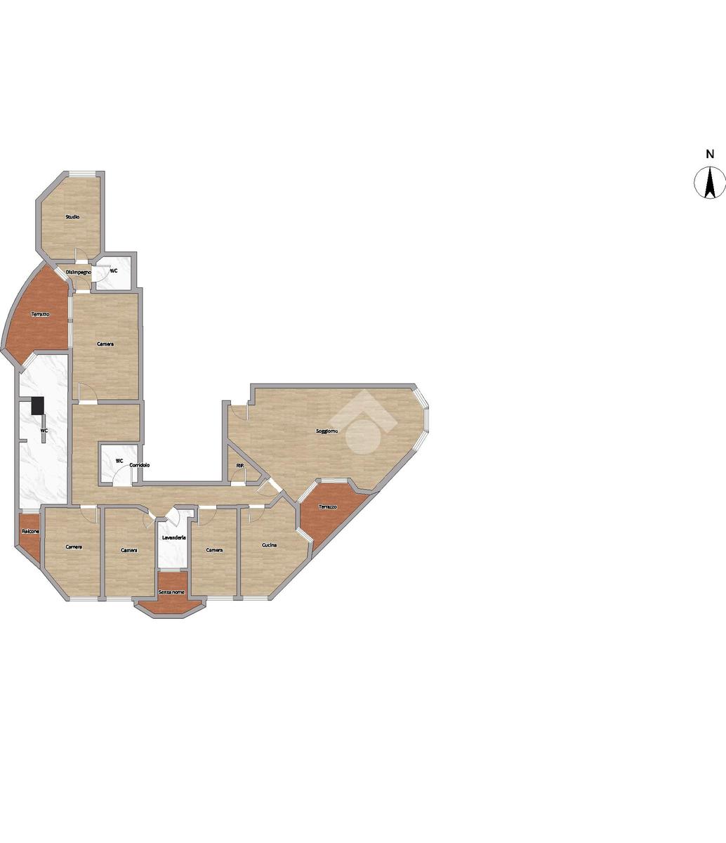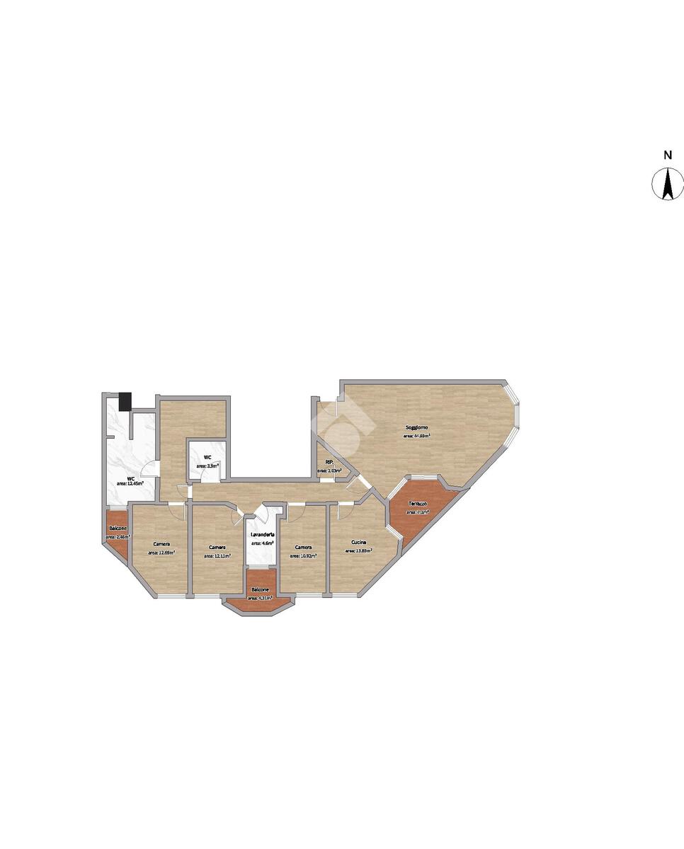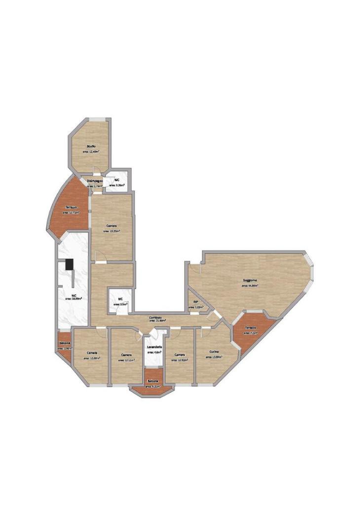 L’unità immobiliare è inserita in un edificio residenziale di impronta signorile ed è caratterizzata da un'ampia metratura, frutto dell’unione di due unità immobiliari. Internamente è così composto: ingresso su un soggiorno doppio con affaccio esterno e con accesso a un terrazzino, cucina abitabile, 5 camere da letto, 4 bagni, un secondo terrazzo e due balconi. Completano la proprietà due cantine di pertinenza. Possibilià di acquistare un box di 31 mq con basculante elettrica, ad un prezzo aggiuntivo di €60.000,00.